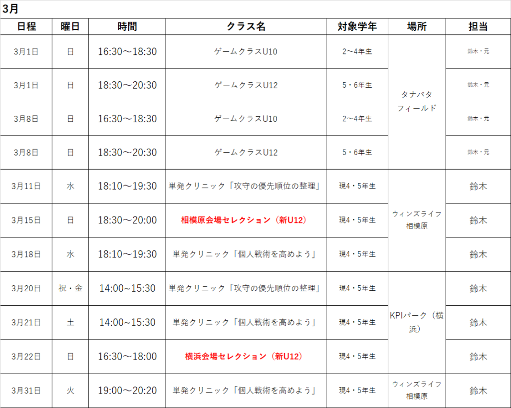 相模原会場(3月15日)・横浜会場(3月22日)にセレクションを実施します。