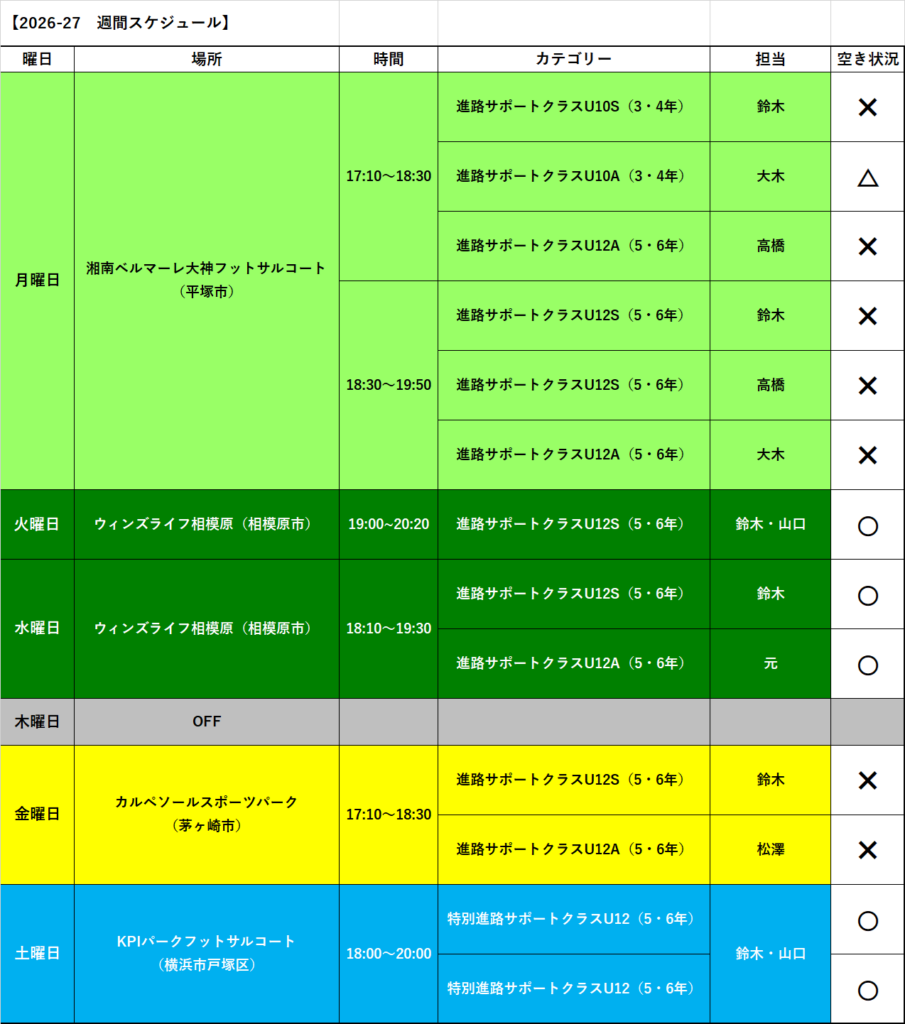 【2026-27】 進路サポートU10/U12クラス(月曜)担当
